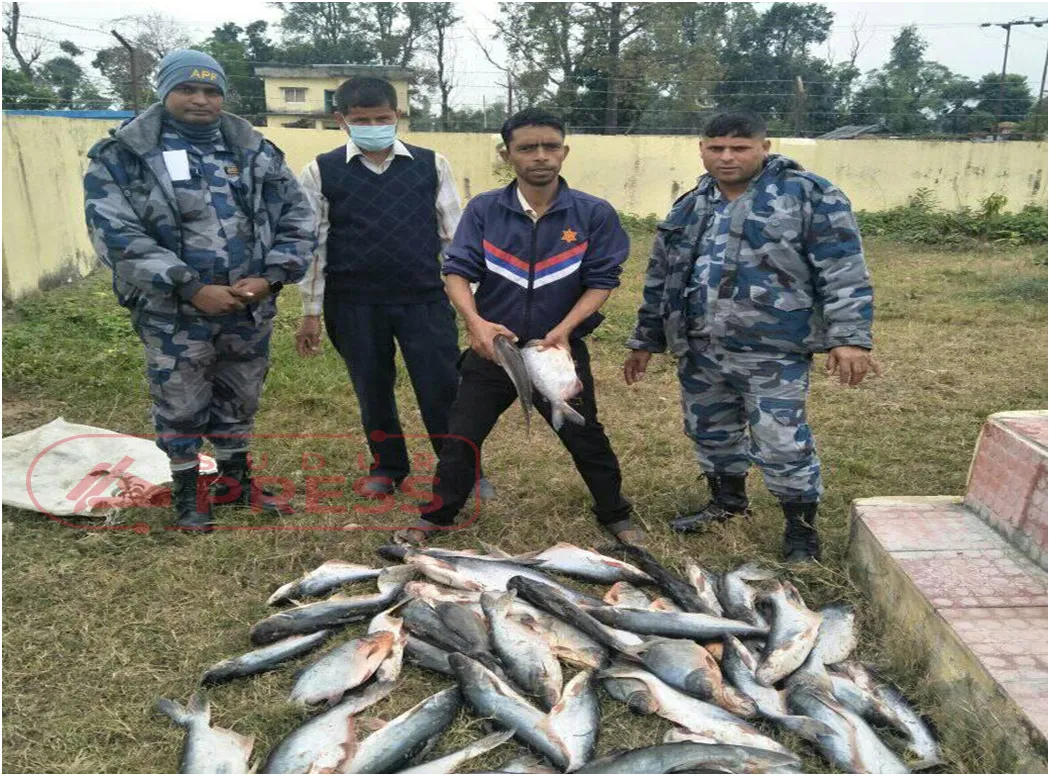 सशस्त्र प्रहरी निरीक्षक गजेन्द्र बहादुर चन्दको नेतृत्वमा खटिएको टोलीले भिमदत्त नगर पालिकाको जिमुवा इलाकाबाट ६० हजार मूल्य बराबरको १ क्विन्टल २० किलो माछा बरामद गरेको हो ।