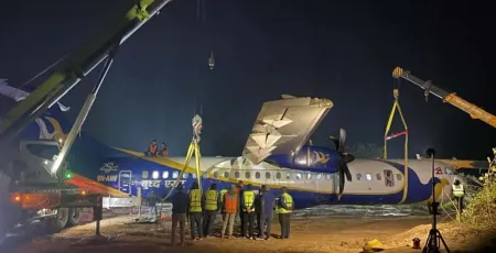 भद्रपुर –भद्रपुर विमानस्थलको धावनमार्गबाट बाहिरिँदै खोल्सोमा धसिएको बुद्ध एयरको एटीआर–७२ विमानलाई अन्ततः ३६ घन्टापछि घटनास्थलबाट सुरक्षित स्थान (विमानस्थल भित्रै) सारिएको छ।