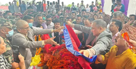 धनगढी–बझाङमा जिप दुर्घटनामा परेर निधन भएका सुदूरपश्चिमका आन्तरिक मामिला तथा कानुन मन्त्री पृथ्वीबहादुर सिंहको पार्थिव शरीरमा राष्ट्रिय झन्डा ओढाएर श्रद्धाञ्जली ब्यक्त गरिएको छ ।