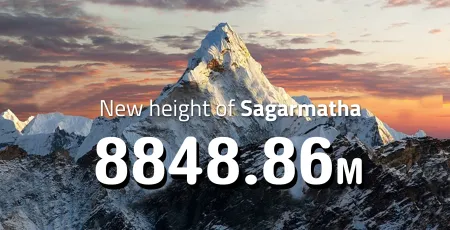 काठमाण्डाै – विश्वको सर्वोच्च शिखर सगरमाथाको उचाइ ८६ सेन्टिमिटरले बढेर ८८४८.८६ मिटर कायम भएको छ । नेपालले पहिलोपटक आफ्नै स्रोत, साधन र जनशक्तिले सगरमाथाको उचाइ मापन गरेको हो ।