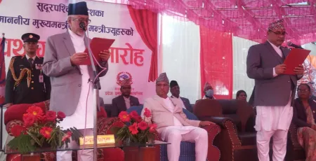 धनगढी — आइतबार नियुक्त सुदूरपश्चिमका मुख्यमन्त्री कमलबहादुर शाहले सोमबार प्रदेश प्रमुख समक्ष पद तथा गोपनीयताको शपथ लिएका छन् ।