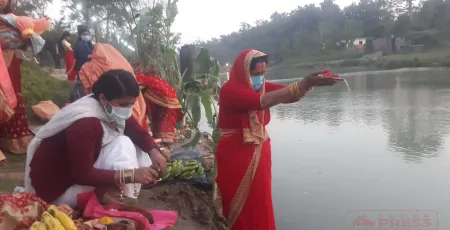 धनगढी–छठ पर्वको मुख्य दिन शुक्रवार बेलुकी अस्ताउँदो सूर्यलाई अर्घ्य दिएर मनाइएको छ। धनगढीको मोहना नदीमा छठ पर्व मनाइएको छ। कोरोना सङ्क्रमणका कारण यस वर्ष गत विगत जस्तो सजावट गरी उल्लास पूर्वक तरिकाले भने छठ मनाइएन ।