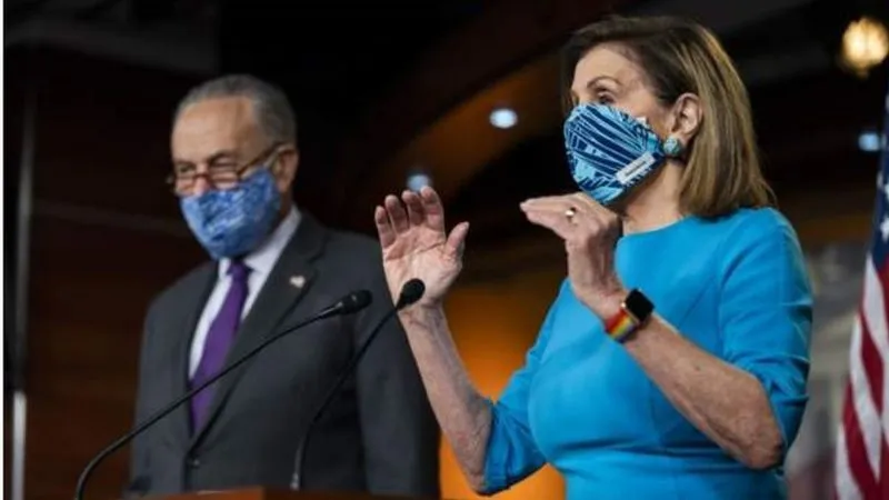 बीबीसी–डेमोक्र्याटिक दलका दुई वरिष्ठ नेता सभामुख न्यान्सी पेलोसी र सिनेट भनिने माथिल्लो सदनका नेता चक सुमरले रिपब्लिकन पार्टीका नेताहरूलाई "वास्तविकता स्वीकार" गर्न र कोरोनाभाइरसका कारण उत्पन्न सङ्कटसँग जुझ्ने विषयमा सहयोग गर्न आग्रह गरेका छन्।