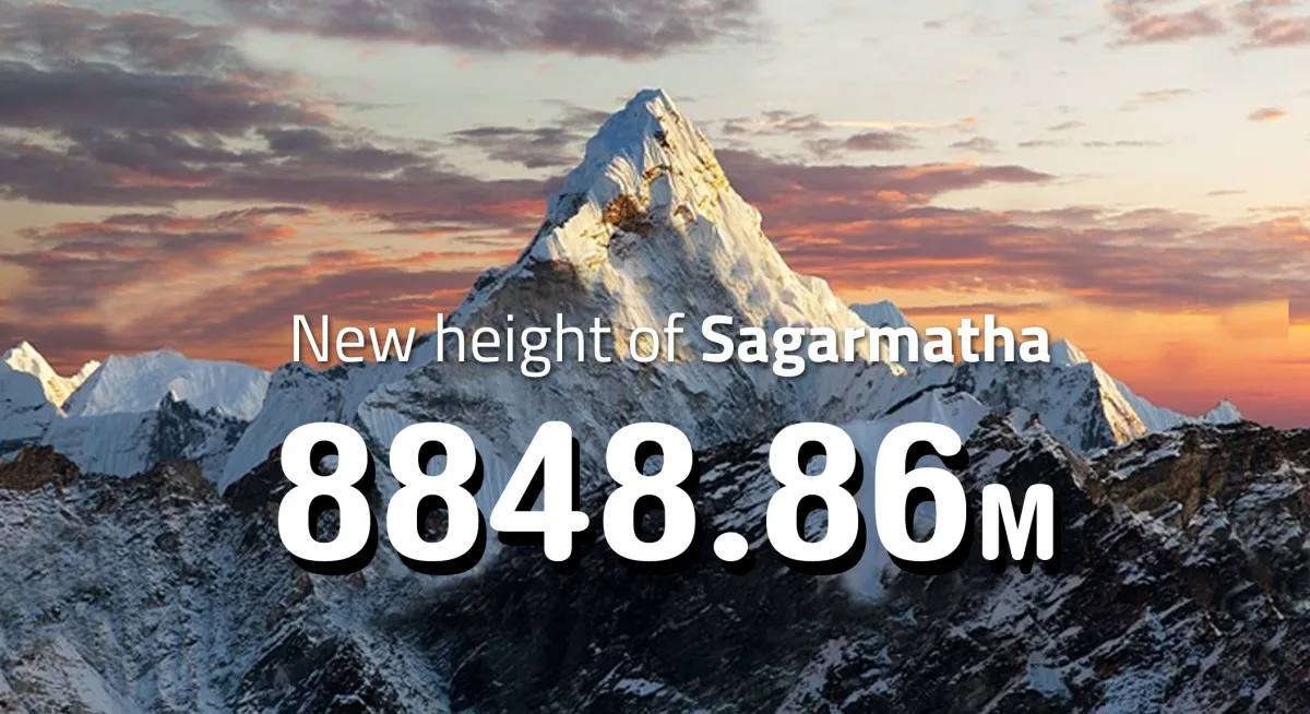काठमाण्डाै – विश्वको सर्वोच्च शिखर सगरमाथाको उचाइ ८६ सेन्टिमिटरले बढेर ८८४८.८६ मिटर कायम भएको छ । नेपालले पहिलोपटक आफ्नै स्रोत, साधन र जनशक्तिले सगरमाथाको उचाइ मापन गरेको हो ।