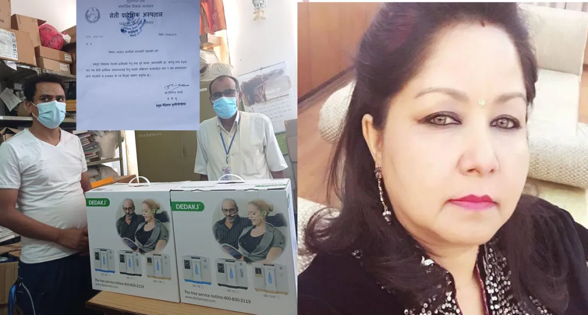 अस्पतालका मेडिकल सुपरिटेन्डेन्ट डा.हेमराज पाण्डेले आरजु राणा देउवा बाट दुई थान अक्सिजन कन्सनट्रेटर प्राप्त भएको जानकारी दिनुभयो ।