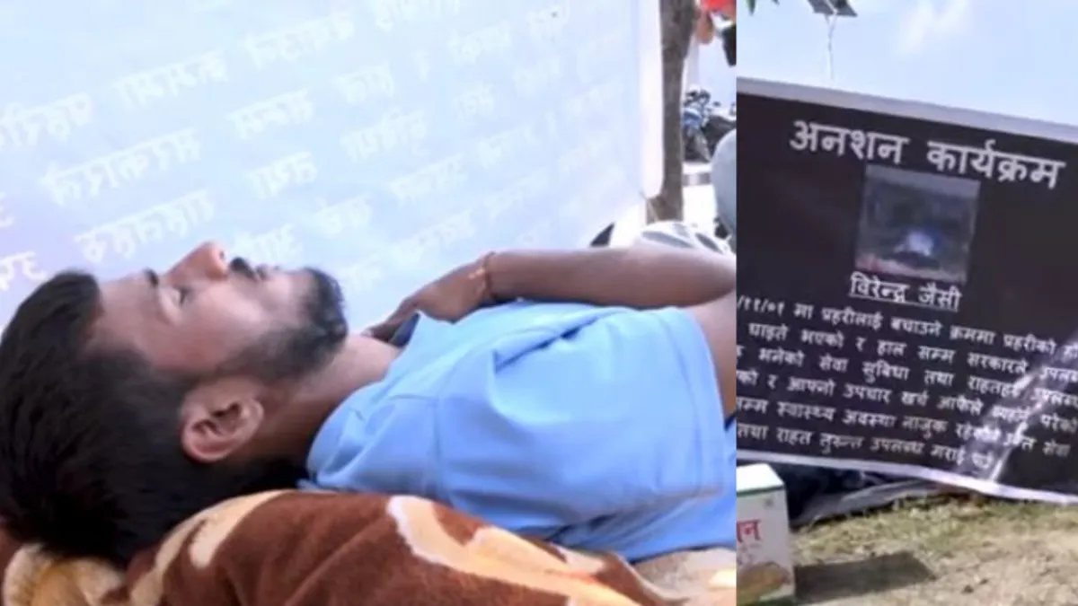 काठमाडौँ — प्रहरीलाई बचाउने क्रममा प्रहरीकै गोली प्रहारले घाइते भएका कैलाली जानकी गाउँपालिका–८ का २६ वर्षीय वीरेन्द्र जैसीले आफ्नो माग सुनुवाइ नभएपछि १७ औं दिन पनि अस्पताल बेडमै अनशन जारी राखेका छन् ।