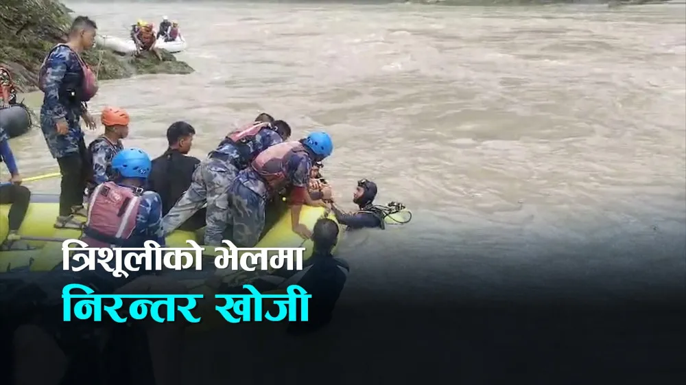 चितवन– चितवनको सिमलतालमा पहिरोले बगाएर त्रिशूलीमा बेपत्ता भएका बस र यात्रुको खोजीका लागि आजदेखि भारतीय उद्धार टोली खटिने भएको छ । त्रिशूली नदीमा गत शुक्रबार खसेको बसमा सवार यात्रुमध्ये हालसम्म २५ जनाको शव फेला परेको छ भने ३७ जनाको अवस्था अझै अज्ञात छ ।