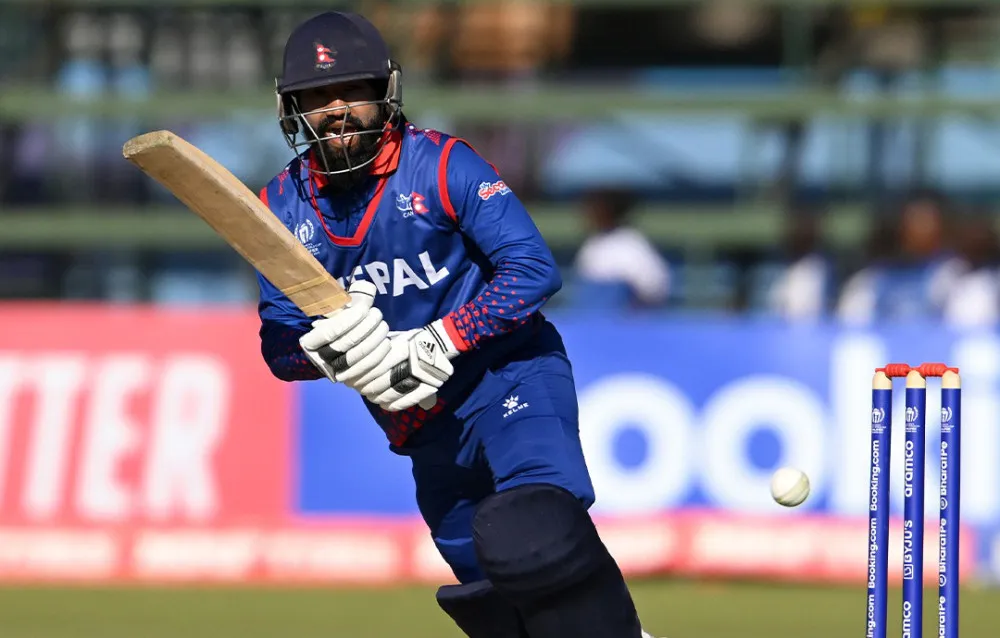 अर्जुन साउद १, ज्ञानेन्द्र मल्ल १३, कप्तान रोहित पौडेल ४, भीम सार्की १, आरिफ शेख १ र कुशल भुर्तेल ३५ रनमा आउट भएपछि नेपाल २१ औं ओभरमा ६३–६ को स्कोरमा पुगेको थियो । कुशलले ५९ बल खेल्दै ४ चौका प्रहार गरे । दीपेन्द्रले गुल्शन झासँग सातौं विकेटमा ४३ रनको साझेदारी गरे । गुलशनले २४ बल खेली १ चौकासहित १२ रन बनाई रोहन मुस्तफाको बलमा आउट भए । अर्जुन, रोहित र भीमलाई आउट गरेका मोहम्मद जवादुल्लाहले १० ओभरमा ४६ रन खर्चे ।