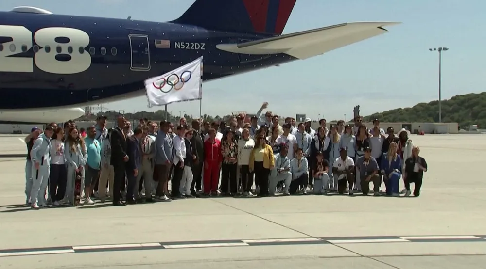 झण्डा अमेरिकी खेलाडी र अधिकारीहरू बोकेको डेल्टा एयरलाइन्सको जेट मार्फत लस एन्जलस पुर्याइएकाे हो । उक्त विमानमा लस एन्जलसका मेयर करेन बासपनि सवार थिए ।