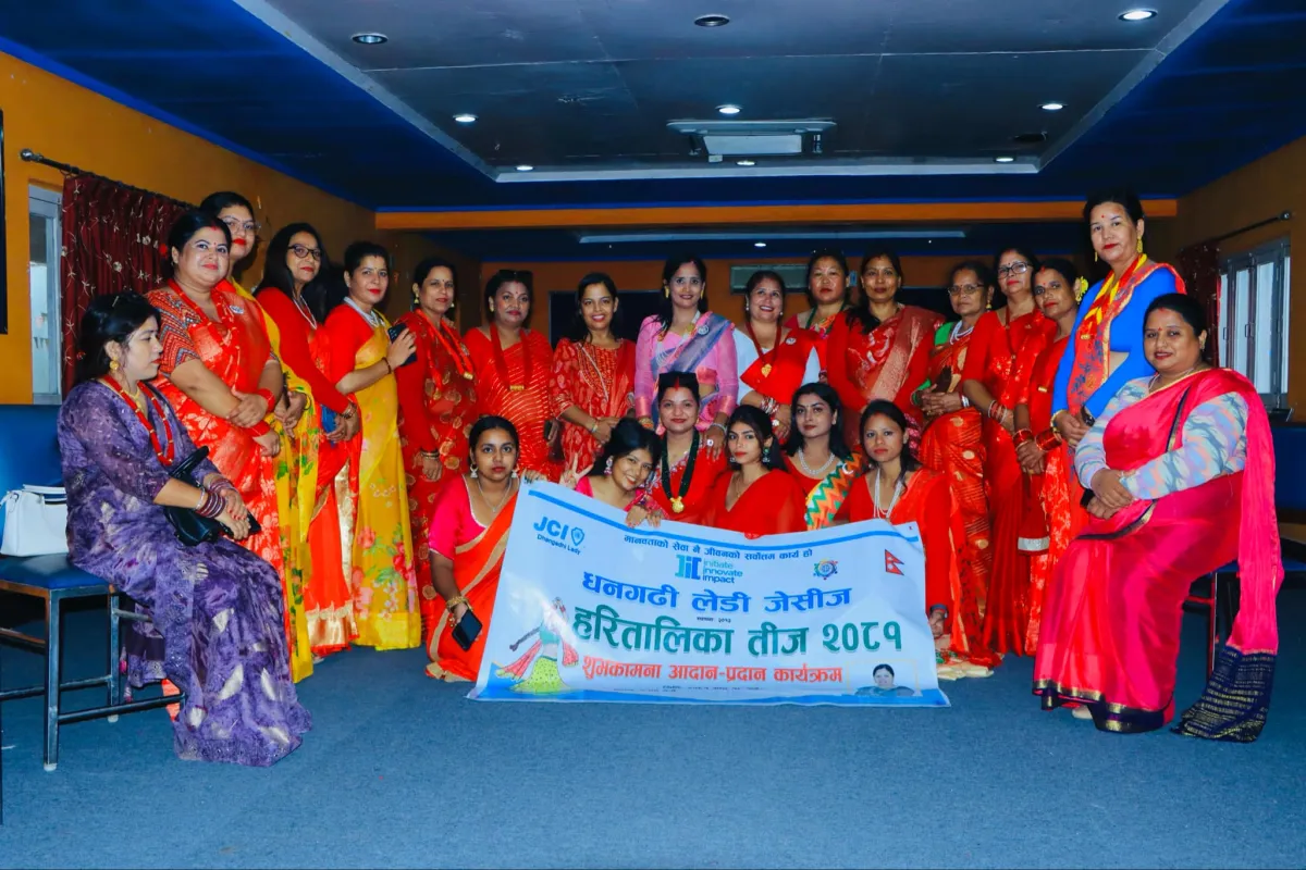 धनगढी–धनगढी लेडी जेसिजले हरितालिका तीज को अवसरमा शुभ कामना आदान–प्रदान कार्यक्रम सम्पन्न गरेको छ । वर्ष २०२४ कि अध्यक्ष जेसि सुशीला निरौला को अध्यक्षतामा भएको कार्यक्रममा प्रमुख अतिथि नेपाली काँग्रेस कैलाली क्षेत्र नं ३ कि क्षेत्रीय सभापति रिता चौधरी रहनु भएको थियो । कार्यक्रममा विशिष्ट अतिथि धनगढी लेडि जेसिज कि पूर्व अध्यक्ष जेसि सरस्वती खड्का भट्ट, महिला नेत्री नेपाली काङ्ग्रेस कैलालीकी महासमिति सदस्य रामकुमारी चौधरी, महिला संघ कैलालीकी सचिव शारदा सुनाम रहनु भएको थियो । लेडि जेसिजका सम्पूर्ण परिवार लगायत अन्य महिला हरुले नाचगान गर्दै शुभकामना आदान प्रदान गरी रमाइलो गरेका थिए । कार्यक्रम सञ्चालन धनगढी लेडि जेसिज वर्ष २०२४ कि महासचिव निता चौधरीले गर्नु भएको हो ।